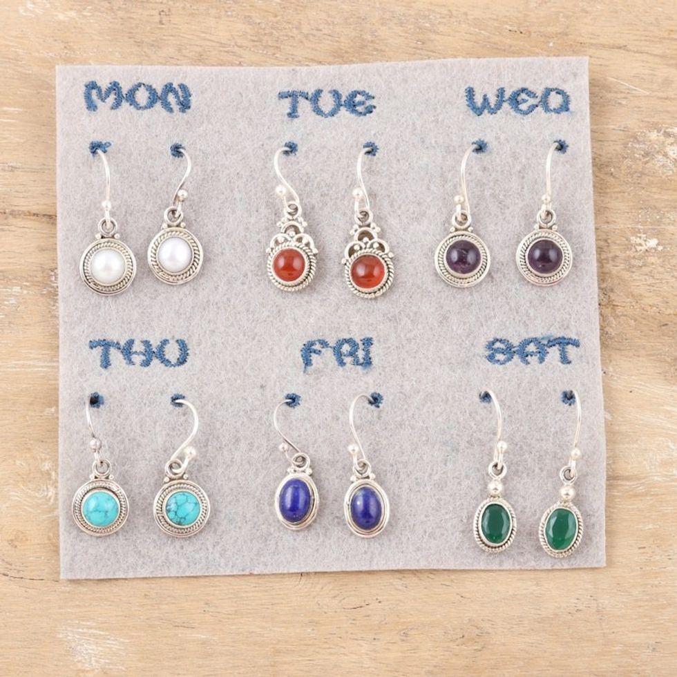 Set of 6 Polished Sterling Silver Gemstone Dangle Earrings 'Daily Jewels' Item ID: 2669923811