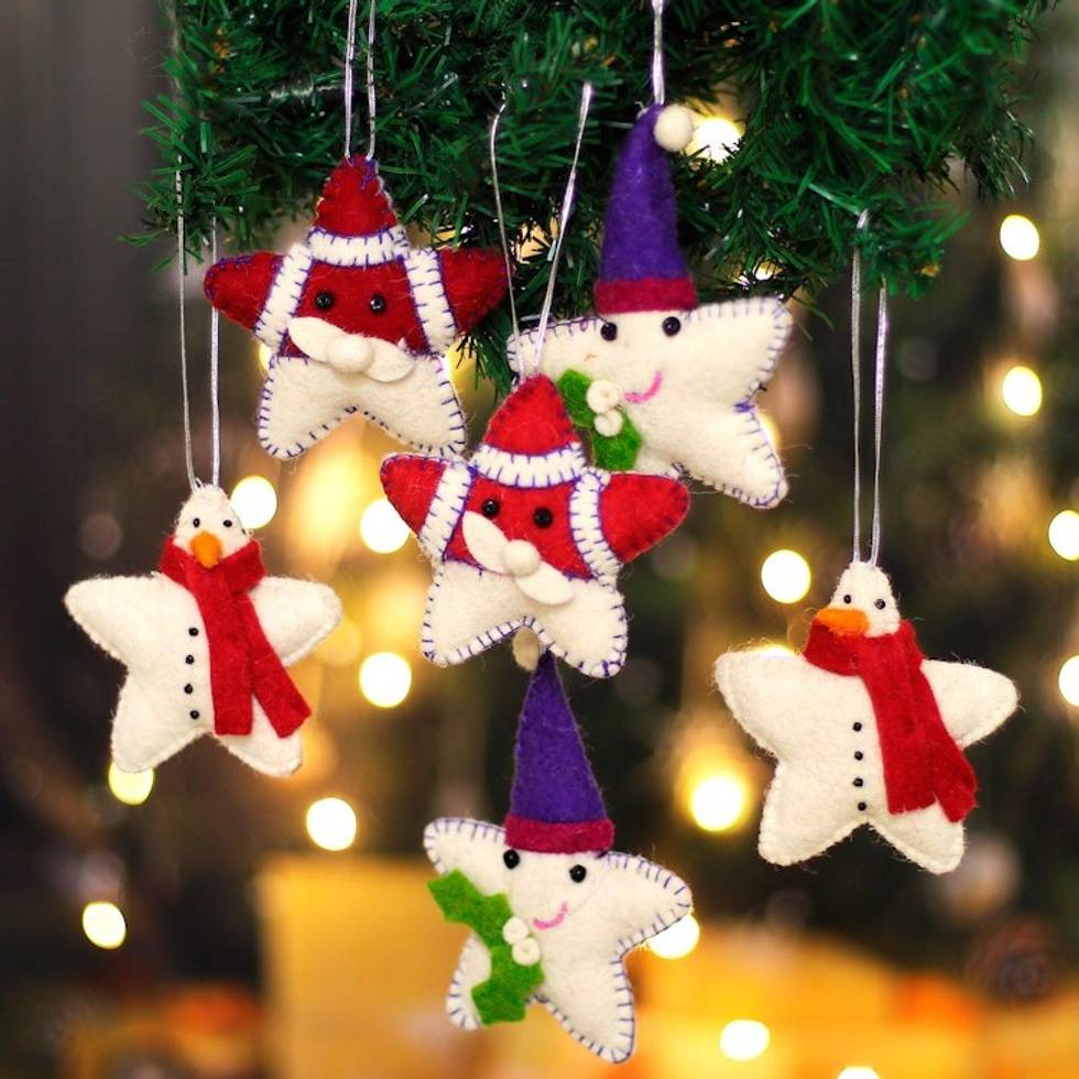 Set of 6 Star-Shaped Christmas-Themed Wool Felt Ornaments 'Star Holidays' Item ID: 2671783042