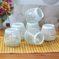 Set of 6 Stemless Wine Glasses Handblown from Recycled Glass 'White Spirals' Item ID: 2669897670