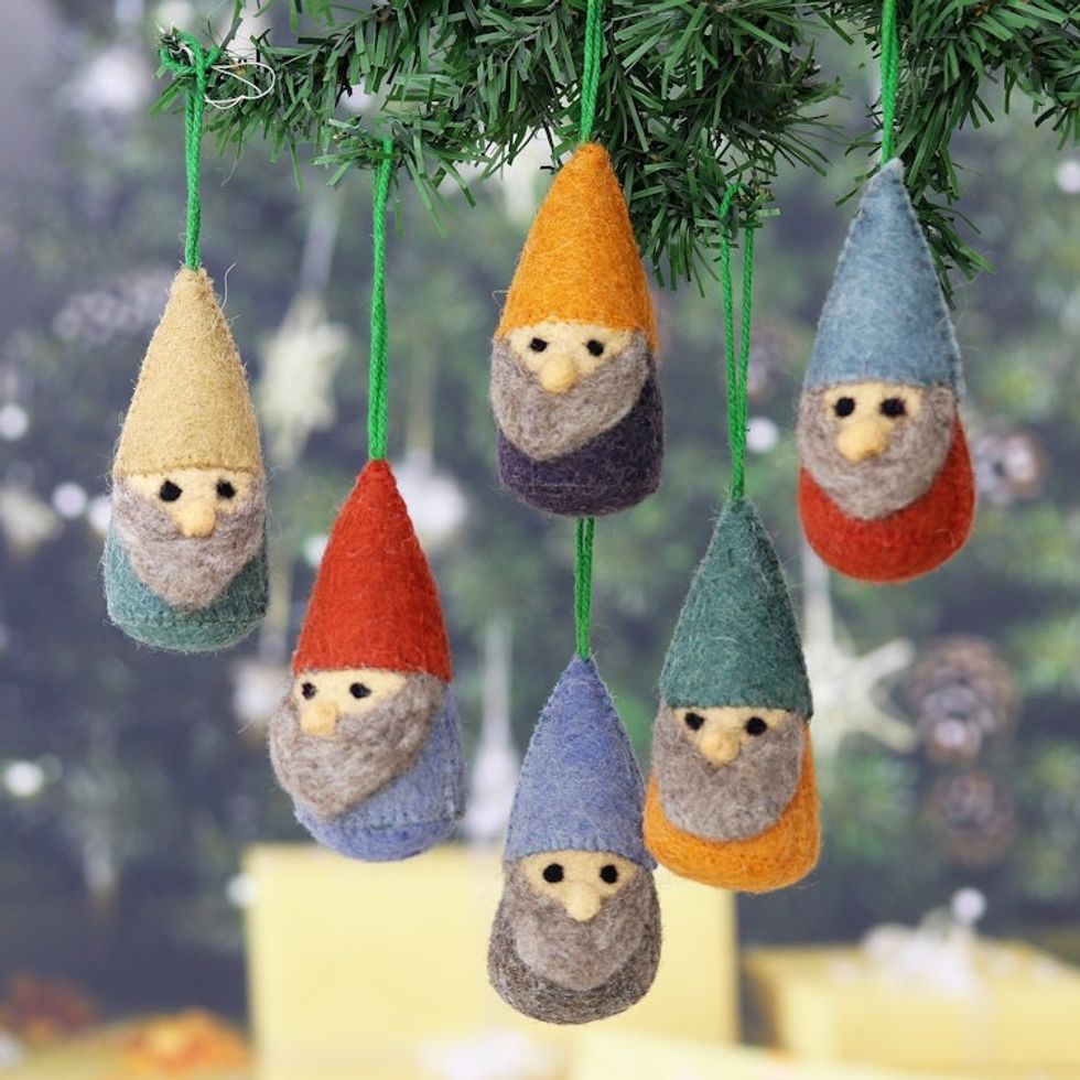 Set of 6 Wool Felt Gnome Ornaments in Cold Tones 'Winter Gnomes' Item ID: 2669924075