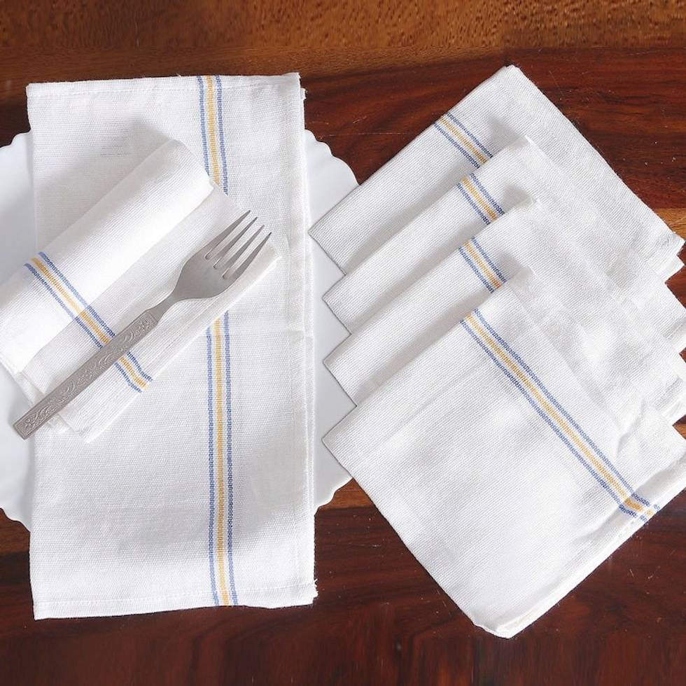 Set of 6 Woven Yellow and Blue Striped White Cotton Napkins 'Glorious Table' Item ID: 2671625253