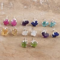 Set of 7 Gemstone Sterling Silver Stud Earrings 'Magical Chants' Item ID: 2671622636