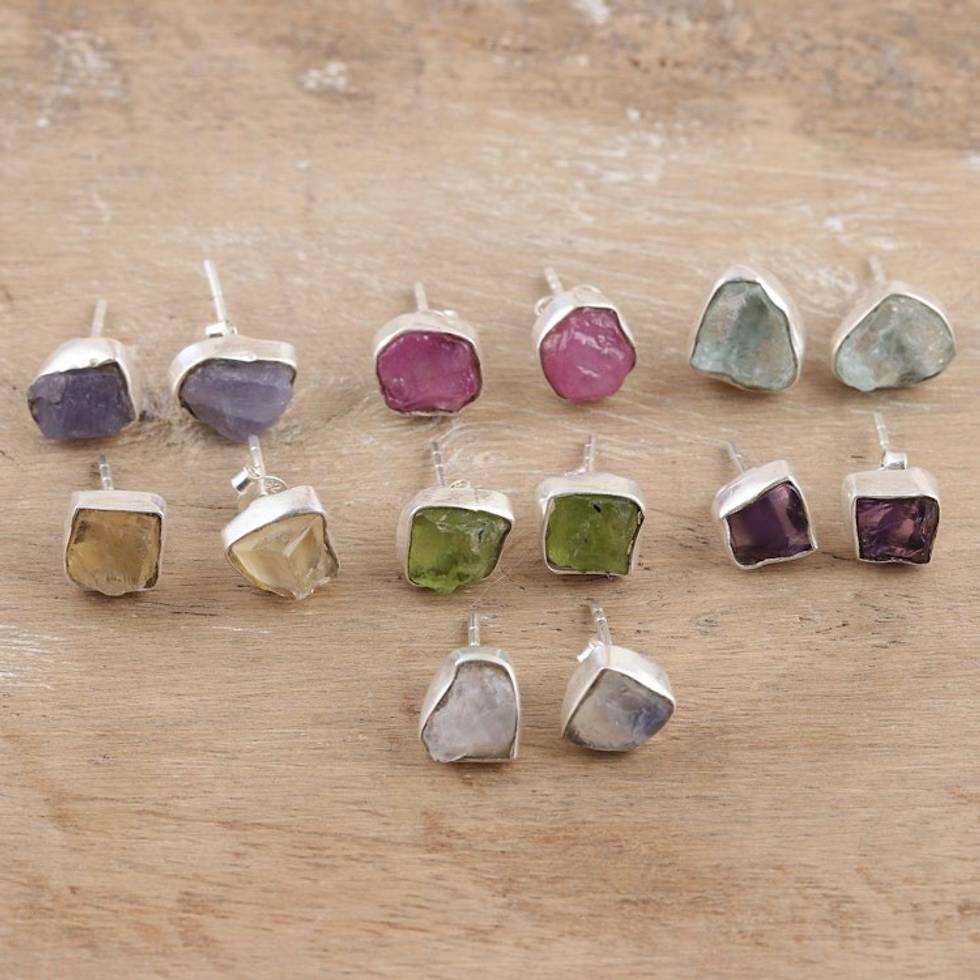 Set of 7 Gemstone Stud Earrings Crafted in India 'Yoga Delight' Item ID: 2669924463