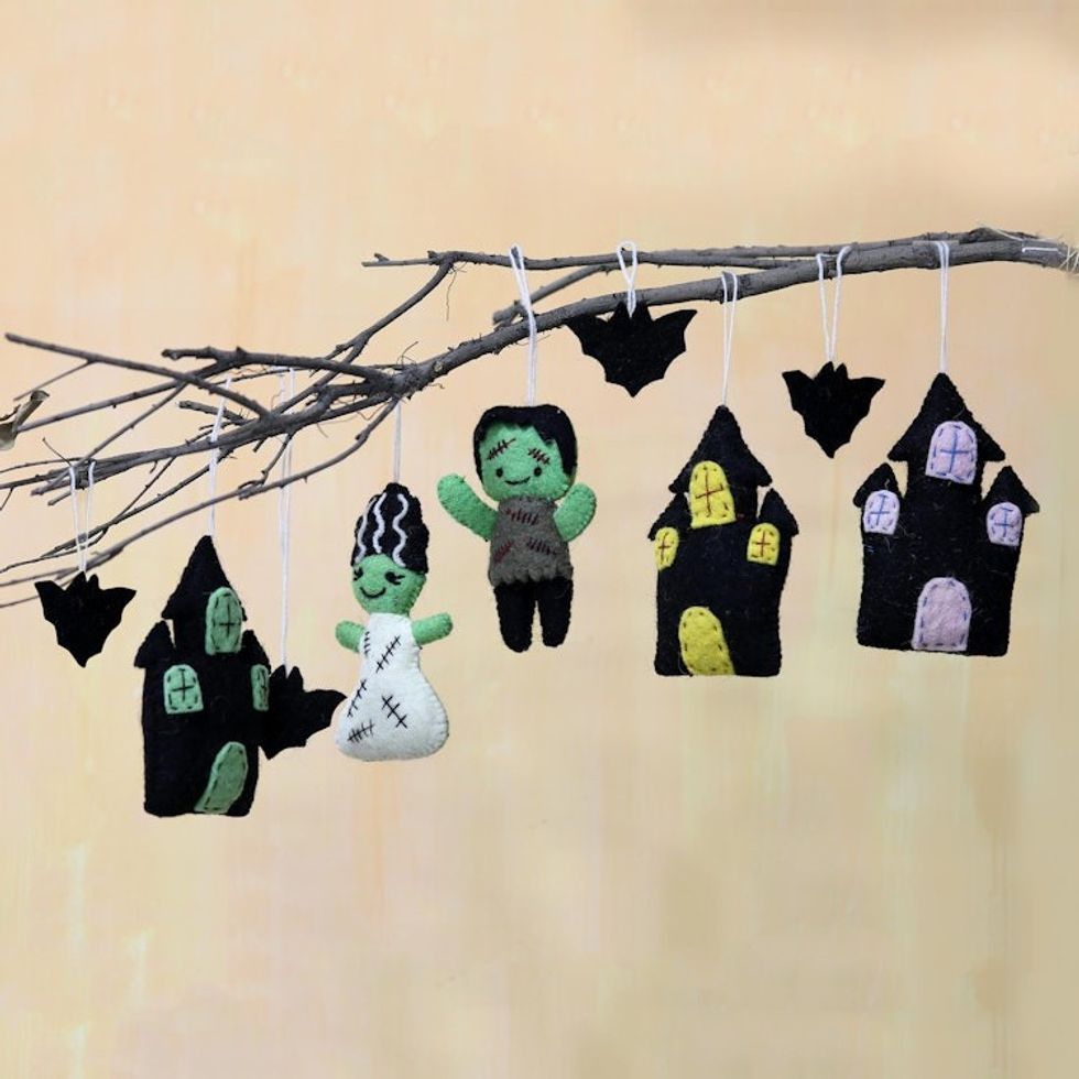 Set of 9 Handmade Wool Haunted Halloween Ornaments 'Halloween Haunts' Item ID: 2669892211