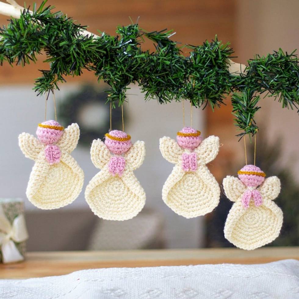 Set of Four Angel-Themed Crocheted Holiday Ornaments 'Sweetest Angels' Item ID: 2671798715