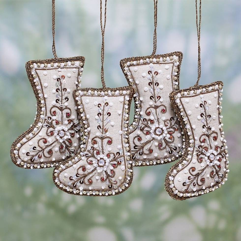 Set of Four Beaded Cotton Stocking Ornaments from India 'Celebration Stockings' Item ID: 2669956174
