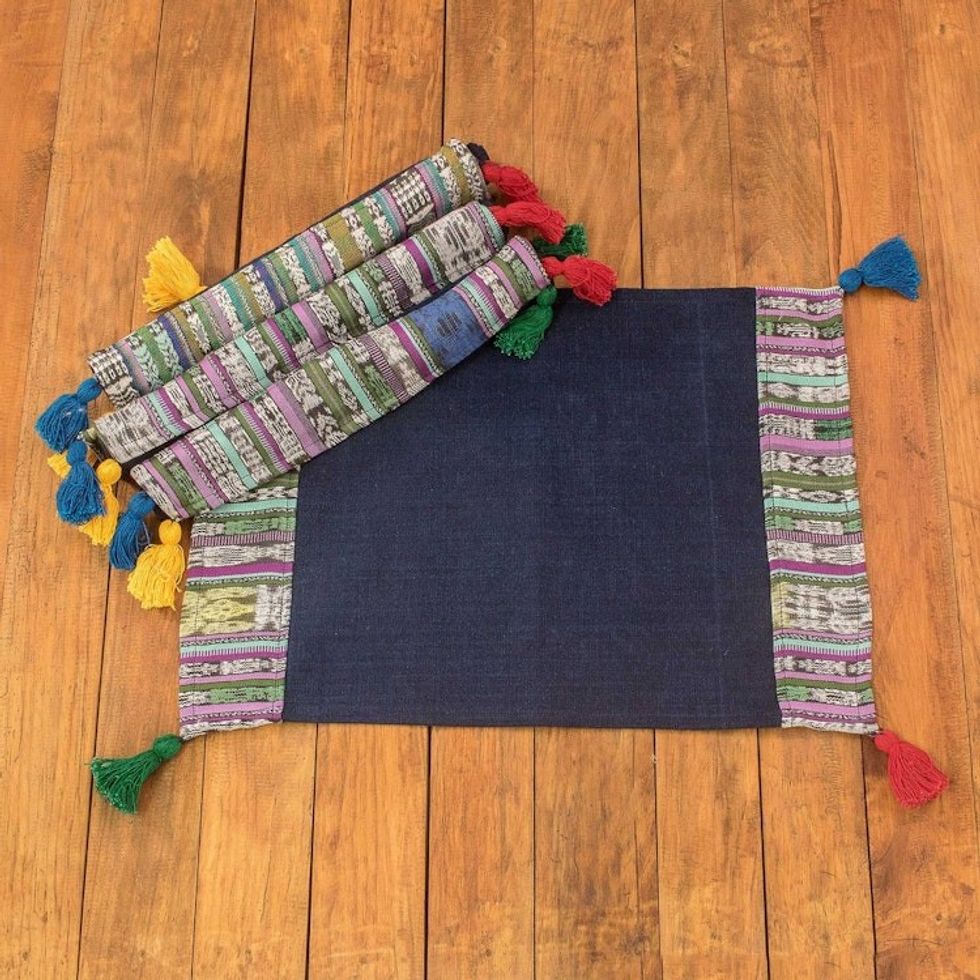 Set of Four Handwoven Cotton Placemats with Colorful Tassels 'Land of Traditions' Item ID: 2671768890