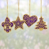 Set of Four Zari Embroidered Purple Ornaments from India 'Purple Christmas' Item ID: 2669892319