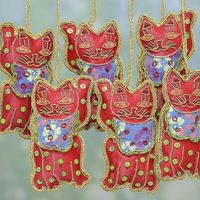 Set of Six Beaded Cat Ornaments in Crimson from India 'Bib Cats' Item ID: 2669892227