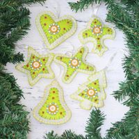 Set of Six Beaded Christmas Ornaments in Citron and White 'Christmas Party in Citron' Item ID: 2671791179