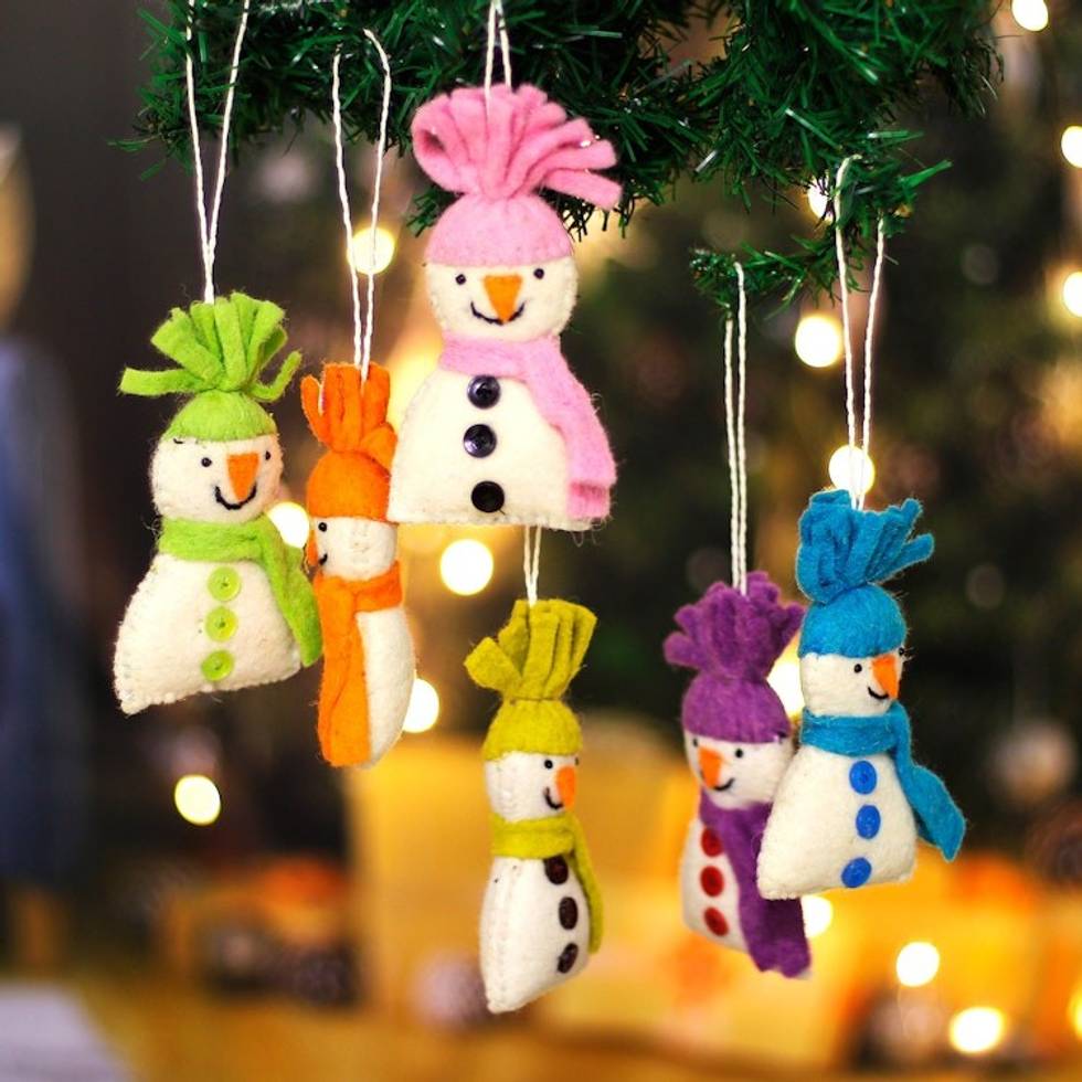 Set of Six Handcrafted Colorful Snowmen Wool Felt Ornaments 'Holiday Snowmen' Item ID: 2671783015