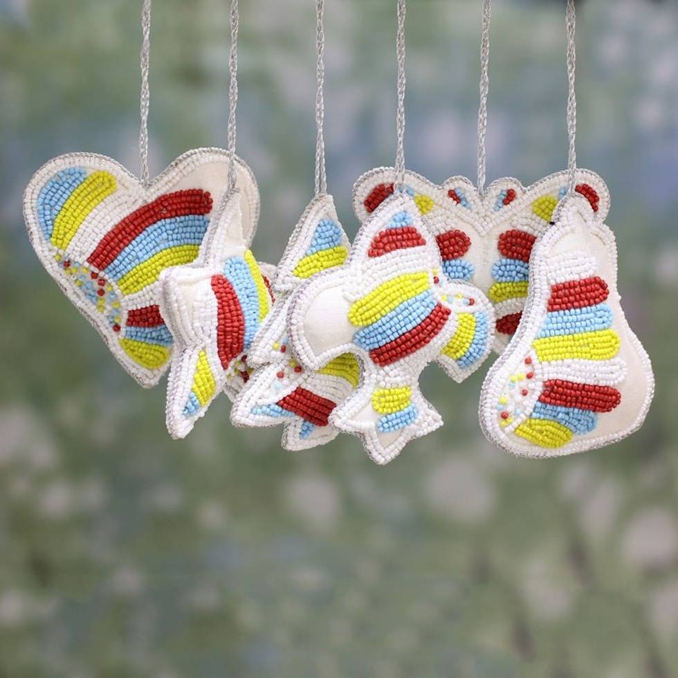 Set of Six Indian Multicolored Beaded Christmas Ornaments 'Multicolored Christmas Party' Item ID: 2671791664