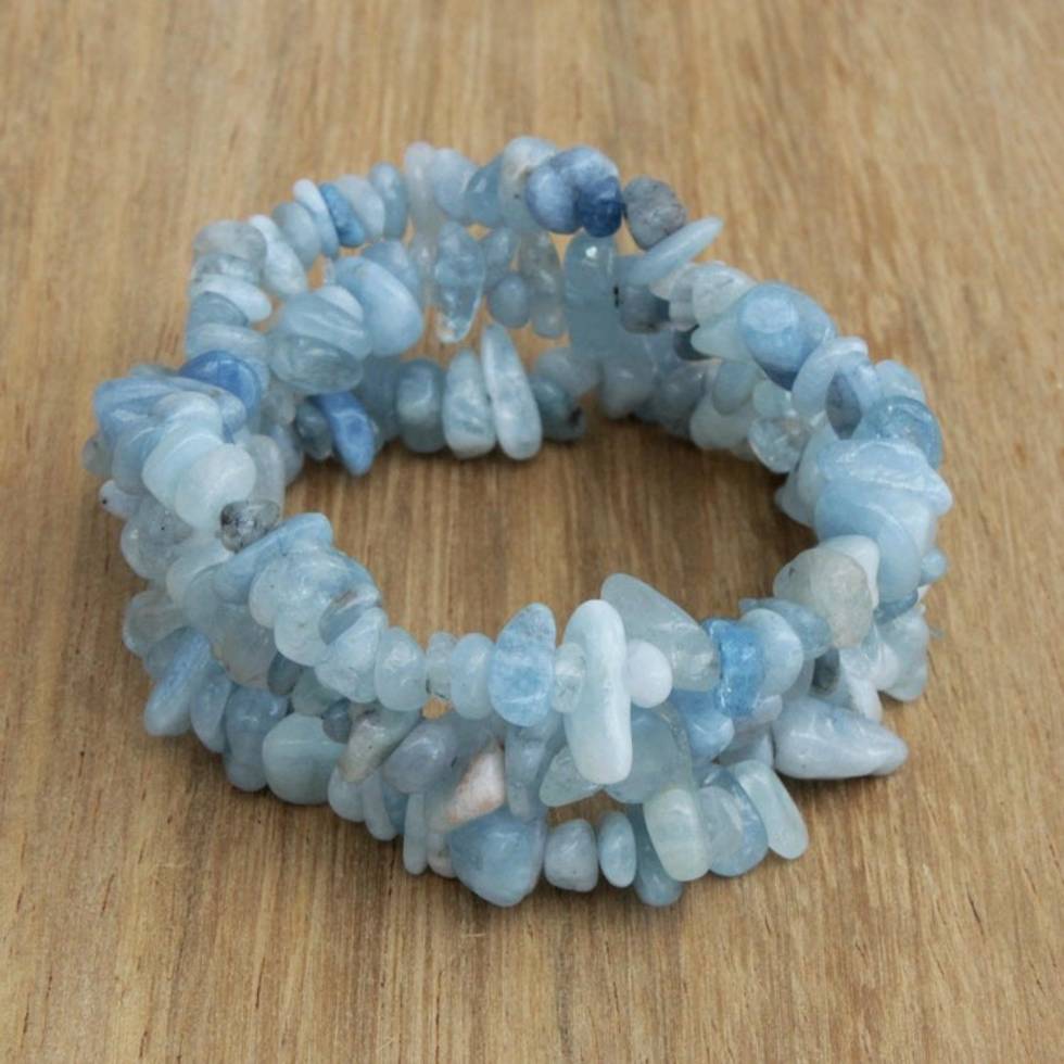 Set of Three Aquamarine Beaded Stretch Bracelets from Brazil 'Naturally Aqua' Item ID: 2669935509