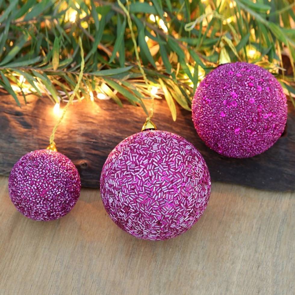 Set of Three Sparkling Beaded Ornaments in a Fuchsia Hue 'Fuchsia Magic' Item ID: 2671786577