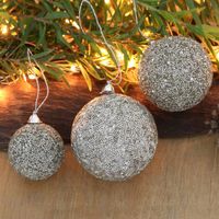 Set of Three Sparkling Beaded Ornaments in a Silver Hue 'Silver Magic' Item ID: 2671786534