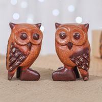 Set of Two Han-Carved Raintree Wood Owl Figurines 'Twin Wisdom' Item ID: 2671798249