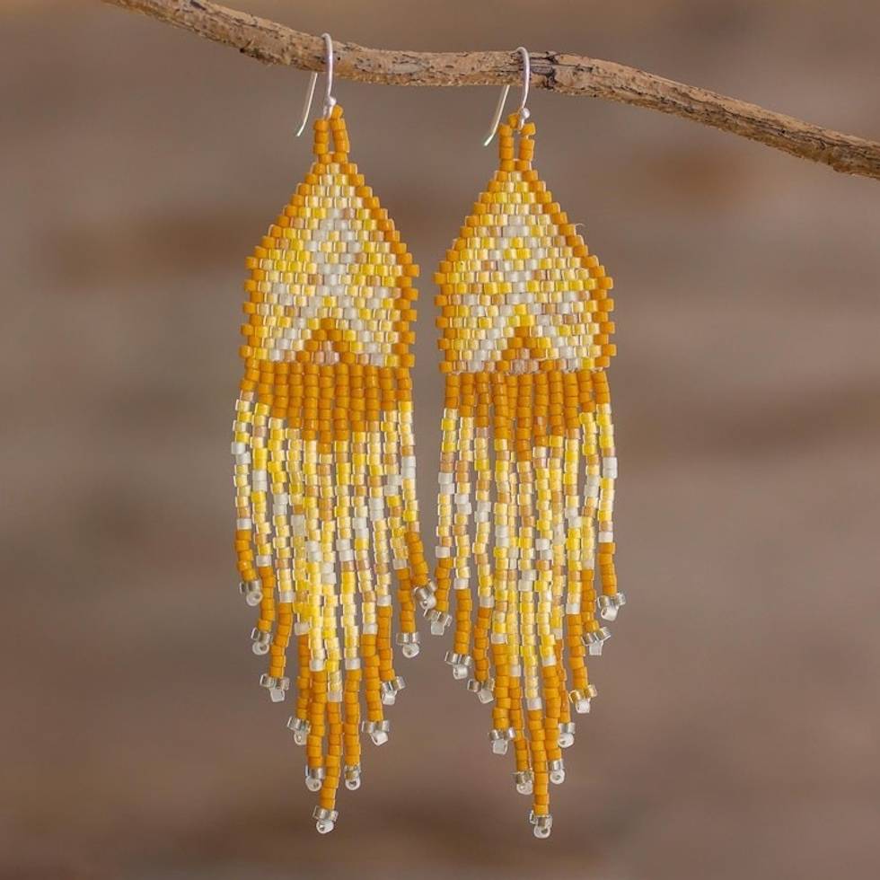 Shades of Yellow Woven Bead Waterfall Earrings 'Peaks and Valleys in Yellow' Item ID: 2671779552