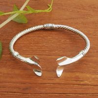 Shark-Themed Sterling Silver Cuff Bracelet from Bali 'Fierce Spirit' Item ID: 2671763464