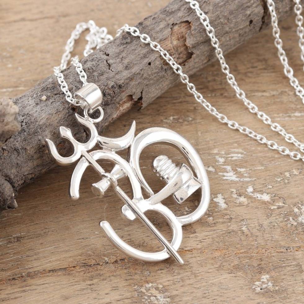 Shiva's Om Symbol Unisex Sterling Silver Pendant Necklace 'Shiva Symbol' Item ID: 2671786552