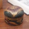 Corinna Doris Delicate details of an ocean adventure with turtle, sea and sky hand painted with care on mahogany evoke peace and calm. Treasures may be safely kept within.