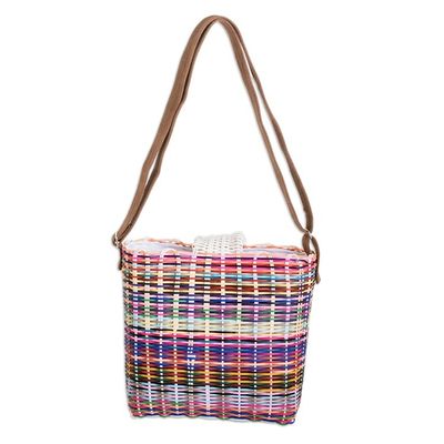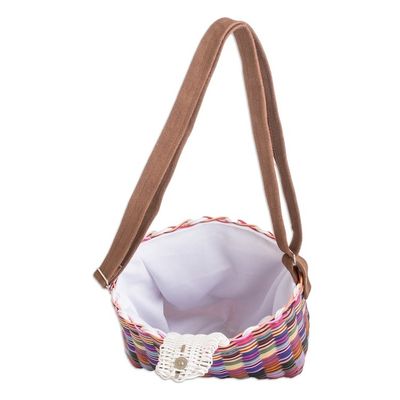 Asociación de Mujeres Vida y Esperanza $64 Item Detail Leather-Accented Striped Cotton Sling Bag in Pink and Red 'Carnation Fate' $64 10
