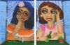 Telma Morais $269.99 Item Detail Colorful Acrylic on Canvas Diptych of Women in Naif Style 'Gossip Girls' $269.9910