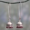 Red Calcite and Glass Bead Dangle Earrings from Thailand 'Red Circles'