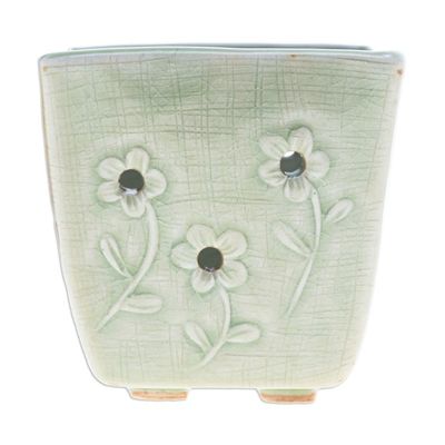 Duangkamol $39.99 Item Detail Celadon Ceramic Mini Planter with Floral Motif in Green 'Green Little Garden' $39.9910