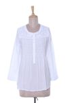 Hand Embroidered Lilac Cotton Tunic from India 'Lilac Garden'