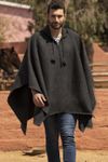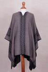 Warm Men's Alpaca Blend Poncho with V-neck from Peru 'Gray Nazca'