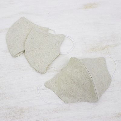 Jamriang $9.99 Item Detail Set of 3 Artisan Crafted Neutral Hemp and Cotton Face Masks 'Subtle Nature' $9.9910