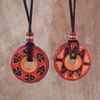 Pair of Red and Black Ceramic Pendant Necklaces from Peru 'Enchanted Land'