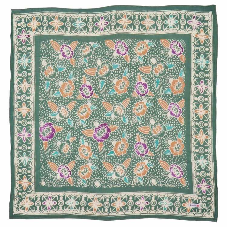 Kasih Co-op $25 Item Detail Hand Dyed Batik Bandana, 100% Soft Cotton, Forest Scroll, Green, Peach, Autumn $25 10