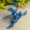 Artisan Crafted Blue Wood Frog Figurine Sculpture 'Blue Dancing Frog'
