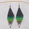 Zigzag Pattern Hand-Knotted Dangle Earrings in Green 'Zigzag Dream in Green'