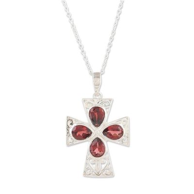 Alok Jain $89 Item Detail Garnet and Sterling Silver Dot Motif Cross Pendant Necklace 'Beautiful Faith' $89 10
