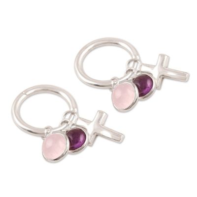 Shivani Choudhary $57 Item Detail Amethyst and Rose Quartz Earrings with Cross Motif 'Soft and Sweet' $57 10