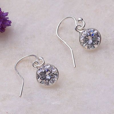 Lalana $69 Item Detail Thai Sterling Silver and Cubic Zirconia Dangle Earrings 'Fractal Circle' $69 10