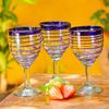 Hand Blown Blue Accent Wine Glasses Set of 6 Mexico 'Tall Cobalt Spiral'