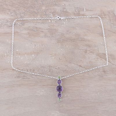 Multi-Gem Peridot Amethyst and Rainbow Moonstone Necklace 'Majestic Harmony'