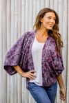 Batik Rayon Kimono Jacket in Midnight and White from Bali 'Many Leaves'