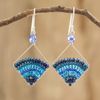 Square Blue Beaded Dangle Earrings With Silver Hooks 'Blue Beaded Rainbow'