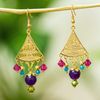 Multicolor Glass Beaded Dangle Earrings with Silver Hooks 'Multicolor Crystal Web'