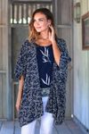 Batik Rayon Kimono Jacket in Midnight and White from Bali 'Many Leaves'