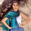 Fair Trade Batik Silk Patterned Blue Shawl 'Java Starlight'