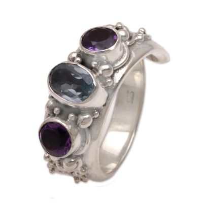Amethyst Stud Earrings Artisan Crafted Jewelry 'Charming Trio'