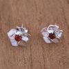 Pearl and Garnet Silver Dangle Earrings 'Frangipani Trio'