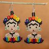 Glass Beaded Frida Dangle Earrings in Orange from Mexico 'Orange Frida'