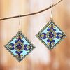 Blue Pink Fused Glass Mosaic Stud Earrings from Mexico 'Blue Rose Mosaic'
