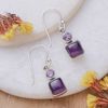 Three Stone Faceted Amethyst Sterling SIlver Dangle Earrings 'Lavender Glamour'
